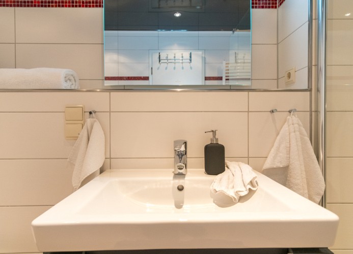 Urlauben Sie auf großzügigen 68 m² (1. Etage) mit Nordwest-Balkon. Das lichtdurchflutete Wohnzimmer ist mit einer gemütlichen Sofaecke und Flatscreen-TV ausgestattet. Im Essbereich finden bequem vier Personen Platz zum Schlemmen. Die angrenzende Küchenzeile ist, für den Urlaubsbedarf, voll ausgestattet. Ein Backofen und ein Geschirrspüler gehören ebenso dazu, wie die Kaffeemaschine, der Wasserkocher und ein Toaster. Geschirr und Besteck sind ausreichend vorhanden. Vom Wohnzimmer aus gelangen Sie auf den Balkon mit Blick zur Düne. Das große Schlafzimmer verfügt über ein gemütliches Doppelbett (160*200cm). Das zweite Schlafzimmer ist mit einem Etagenbett und einem geräumigen Schrank eingerichtet. Das Badezimmer ist mit einer ebenerdigen Dusche mit Glastrennwand und einer Handtuchheizkörper ausgestattet.