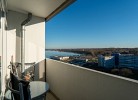Die moderne Studiowohnung befindet sich in der zwölften Etage und verfügt auf ihren 45m² über einen sonnigen Wohn- und Schlafbereich mit einem TV-Bereich und Essecke im vorderen Bereich mit Zugang zum Südbalkon. Im hinteren Bereich befindet sich ein gemütliches Doppelbett (2 x 90 x 180cm). Die wohnung wurde für zwei Personen optimiert. Bei Bedarf findet eine dritte Person (für Kinder geeignet) bequem auf dem Schlafsofa Platz. Die offene Küchenzeile ist u.a. mit einem Geschirrspüler und einem Mikrowellen-Backofen-Kombigerät ausgestattet.