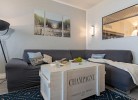 Der großzügige Wohnbereich verfügt über ein gemütliches Ecksofa, einen Flatscreen-TV und vieles mehr. Vom Essbereich aus kann man schon beim Frühstück den herrlichen Ausblick zur Ostsee - bis hin zur Fehmarnsundbrücke - genießen!