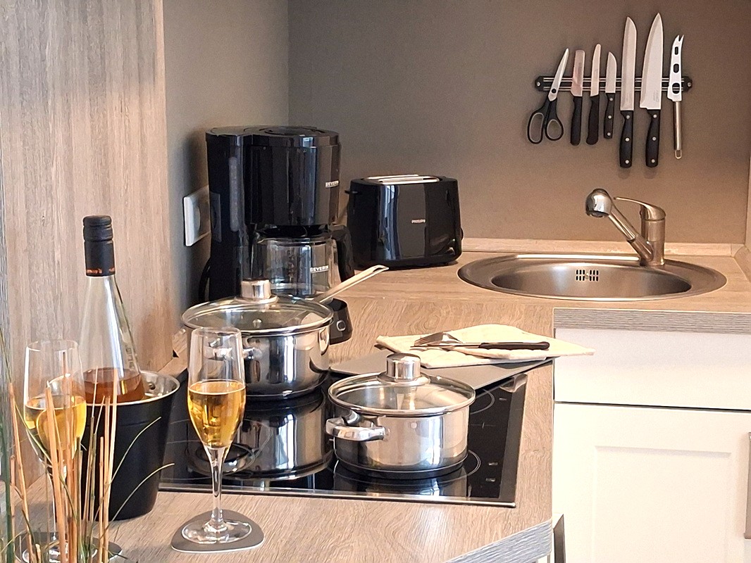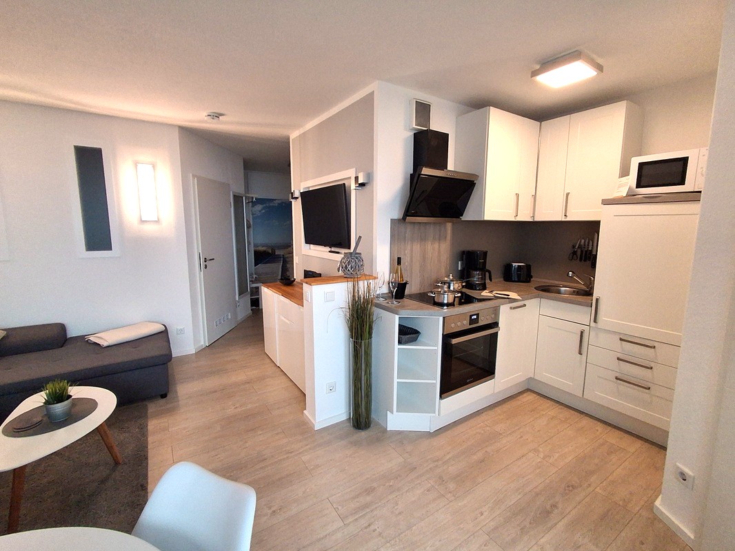 In der gut ausgestatteten Küche lassen sich kleine Genussmomente ganz relaxt selbst zaubern. Das gemütliche Schlafzimmer verspricht erholsame Nächte, während das separate Kinderschlafzimmer auch Familien genügend Raum für Nähe und Rückzug bietet. Das moderne Bad ist mit einer bodengleichen Dusche und einem Handtuchwärmer ausgestattet.