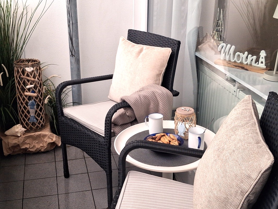 Vom Balkon mit Meerblick lässt sich der Tag wundervoll mit einer Tasse Kaffee in der Meeresluft starten und der Sonnenuntergang am Abend bei einem leckeren Getränk entspannt genießen.
