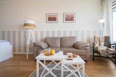 Unsere im Beachhouse-Stil eingerichtete Ferienwohnung erwartet Sie in Strandlage und mit direktem Zugang zum Binnensee auf der Dünenhalbinsel Steinwarder, im sonnigen Strandbad Heiligenhafen.