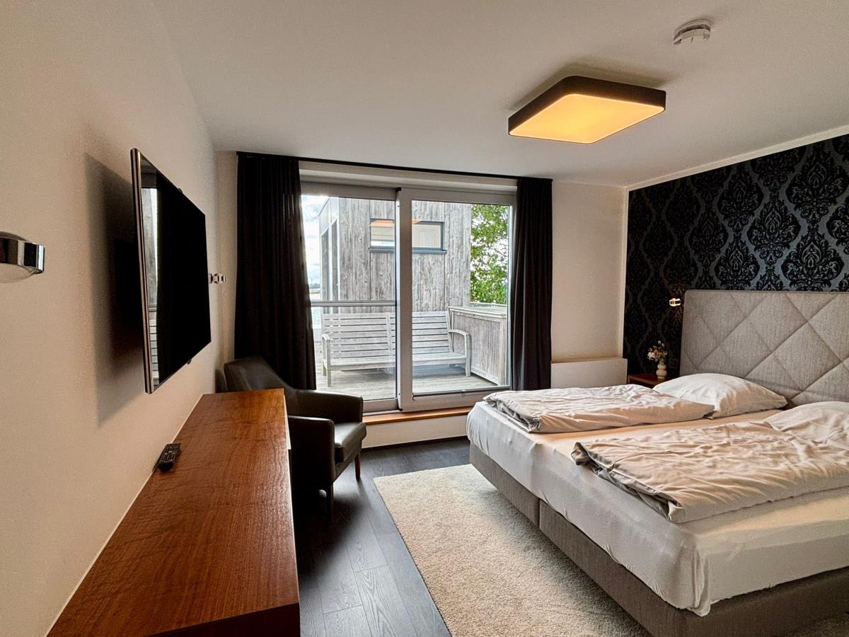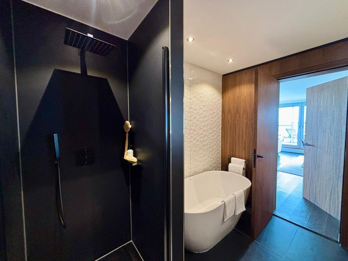 Das Badezimmer ist mit seiner bodengleichen Dusche und geräumigen Sauna eine kleine Wellnessoase. Beide Schlafzimmer verfügen über ein komfortables Boxspringbett (180*200cm), einen Smart-TV, Verdunklungsmöglichkeiten und Einbaumöbel.