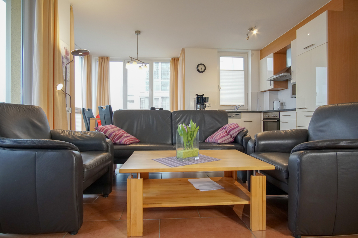 Die 57qm-Wohnung befindet sich in der 1. Etage in der Anlage "Strandpark" nah am Strand und wurde zuletzt 2020 modernisiert.
