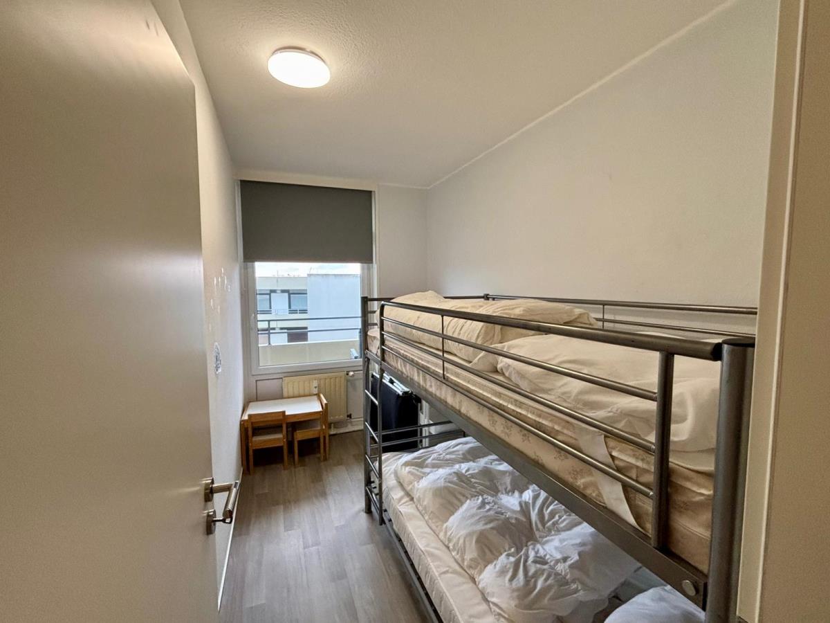 Das Kinderzimmer ist mit einem praktischen Etagenbett ausgestattet und bietet den kleinen Gästen einen gemütlichen Rückzugsort nach einem aufregenden Tag am Strand. Der Elternschlafbereich befindet sich im hinteren Teil des Wohnzimmers und hält ein komfortables Doppelbett für erholsame Nächte bereit.